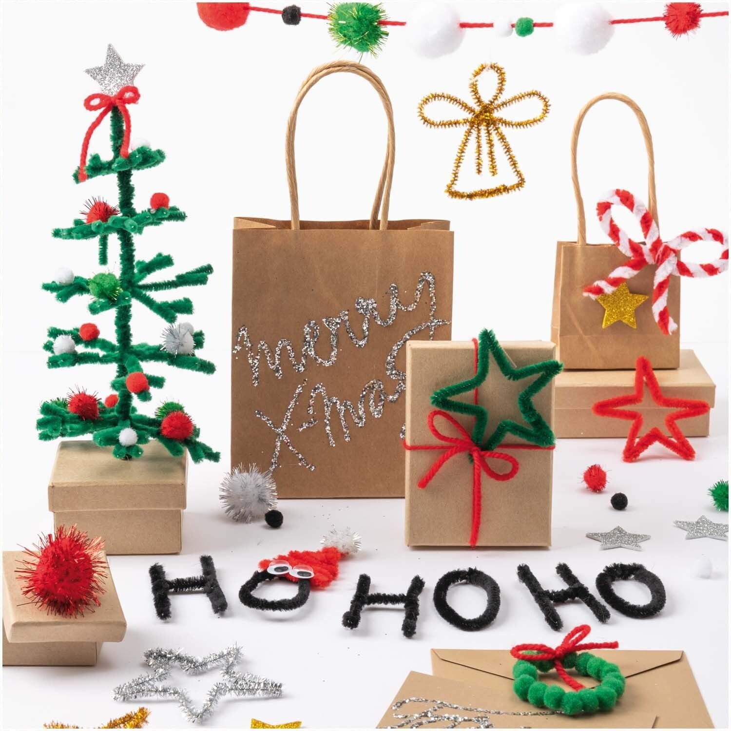 Dieses 168-teilige DIY-Bastelset regt zum weihnachtlichen Kreativwerden an! Es enthält viele verschiedene Bastelmaterialien. Von Chenilledrähten, Pompons über glitzernde Moosgummisterne, Filz, Wollschnüre bis hin zu Wackelaugen ist alles dabei, was man zur Umsetzung von fantastischen Bastelideen benötigt. Das Bastelset enthält klassisch weihnachtliche Farbkombinationen wie Rot, Grün, Weiß, Silber und Gold.
