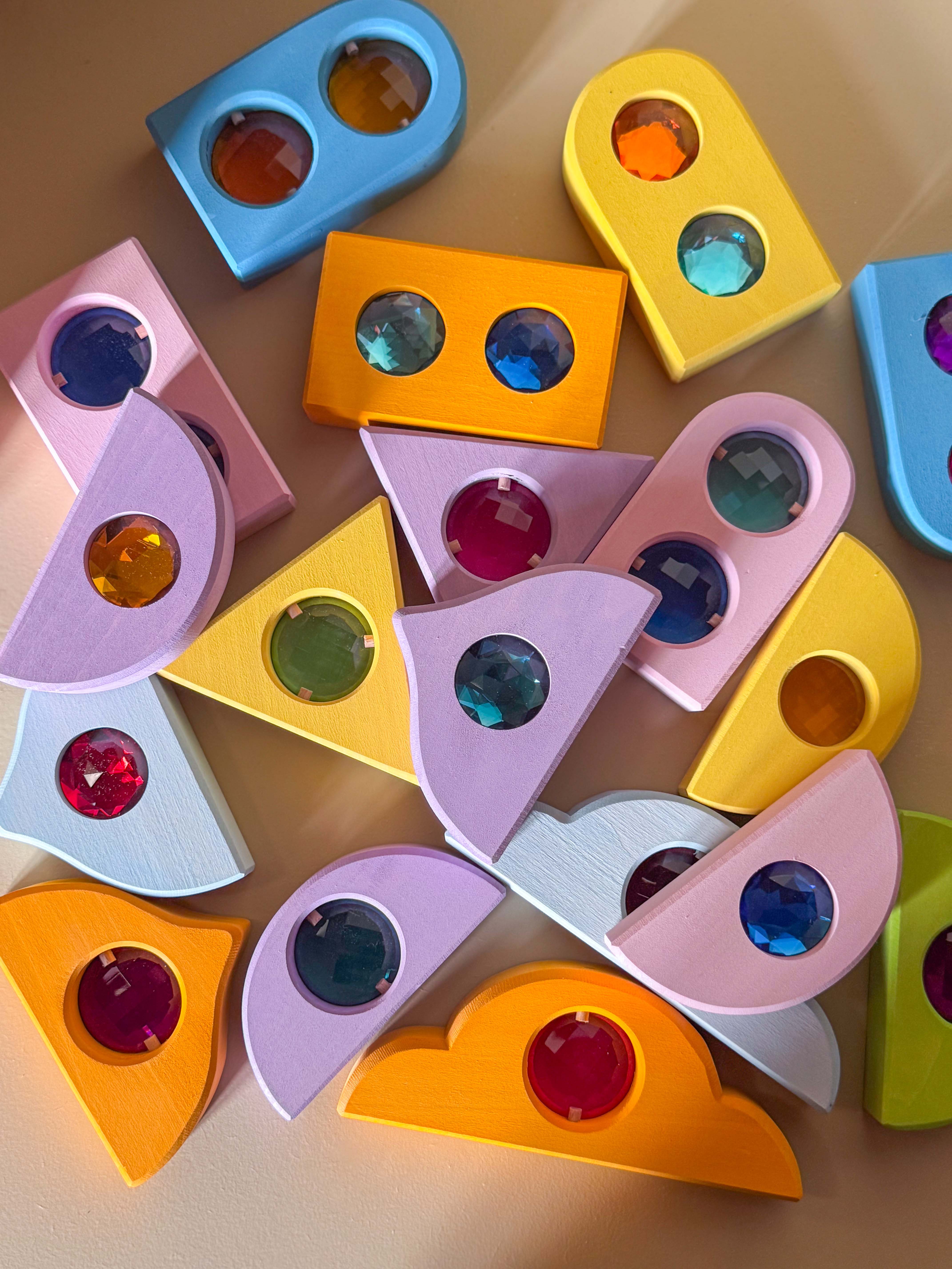 Die Funkeldächer in anmutenden Pastellfarben und glitzernden Funkelsteinen in sechs unterschiedlichen, geometrischen Formen in jeweils doppelter Ausführung sind ein optisches Highlight für das Bauen im freien Spiel. Kreative Bauten und Märchenwelten können mit den funkelnden Dächer ideal ergänzt werden.