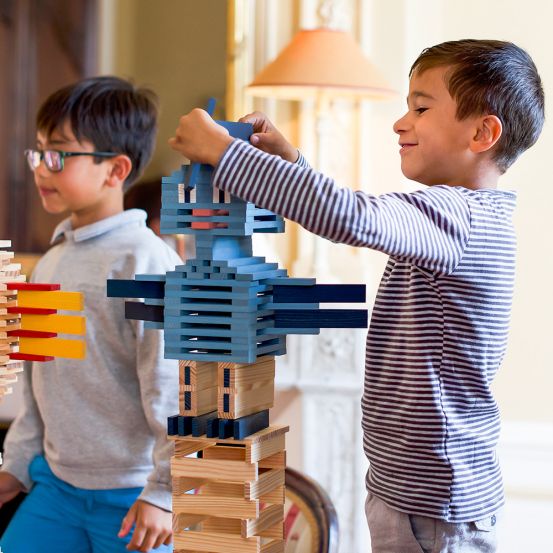 Die KAPLA-Plättchen sind aus naturbelassenem, nachhaltigem Pinienholz (Seekiefer) gefertigt, das aus französischen, zu 100% nachhaltig bewirtschafteten Wäldern stammt. Die farbigen Holzplättchen sind mit lebensmittelechter Farbe gefärbt.