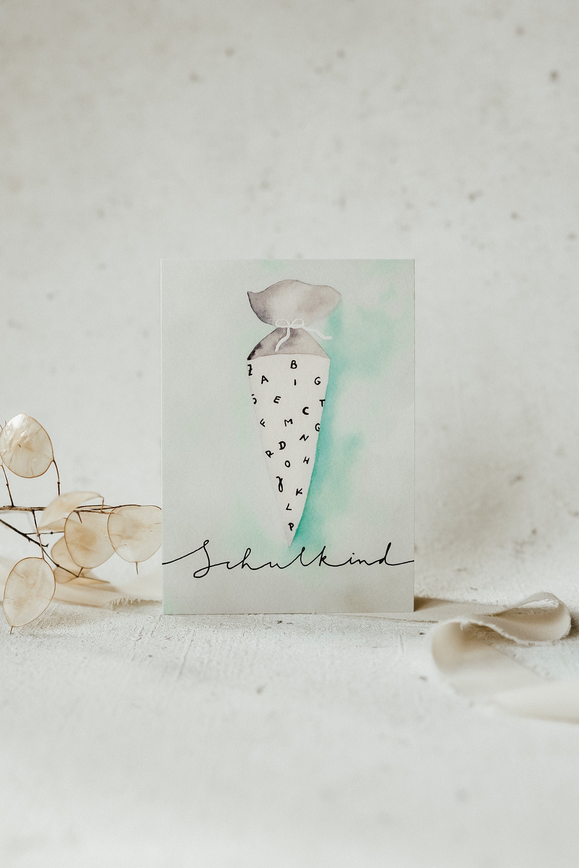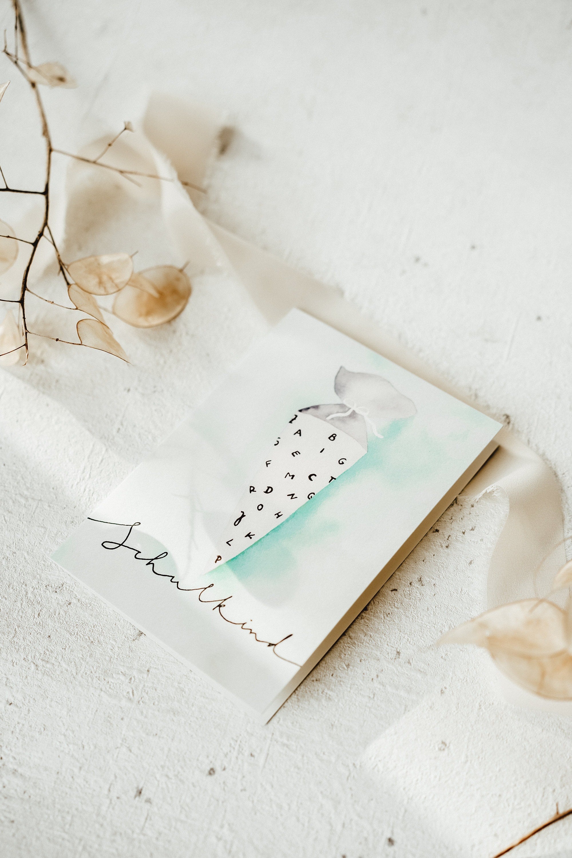 Karte zur Einschulung für Junge oder Mädchen oder als Einladung zur Einschulung.
