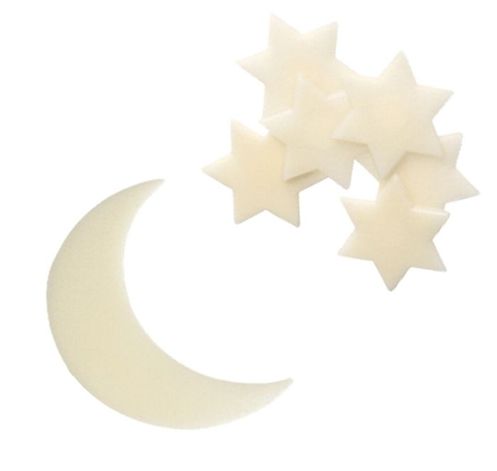 Kleine Packung mit 8 Traumsternen und 1 Mond. Eine traumhafte Dekoration für das Kinderzimmer, die im Dunkeln leuchtet.