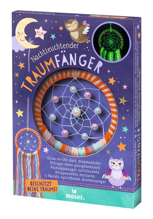 Dieser farbenfrohe Traumfänger sorgt nicht nur tagsüber für gute Laune, sondern wird bei Dunkelheit zum leuchtenden Hingucker. Die speziellen Fäden laden sich unter Tages- oder Kunstlicht auf und geben im Dunkeln ein sanftes Licht ab – perfekt für eine beruhigende Atmosphäre beim Einschlafen.