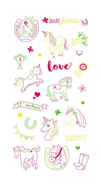 Leuchtender Stickerspaß mit den Pferde Neonstickern!