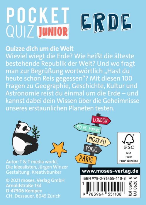 Wie viel wiegt die Erde? Wie heißt die älteste bestehende Republik der Welt? Und wo fragt man zur Begrüßung wortwörtlich „Hast du heute schon Reis gegessen“? Mit diesen 100 Fragen zu Geographie, Geschichte, Kultur und Astronomie reist man einmal um die Erde – und kann dabei sein Wissen über die Geheimnisse unseres erstaunlichen Planeten testen.