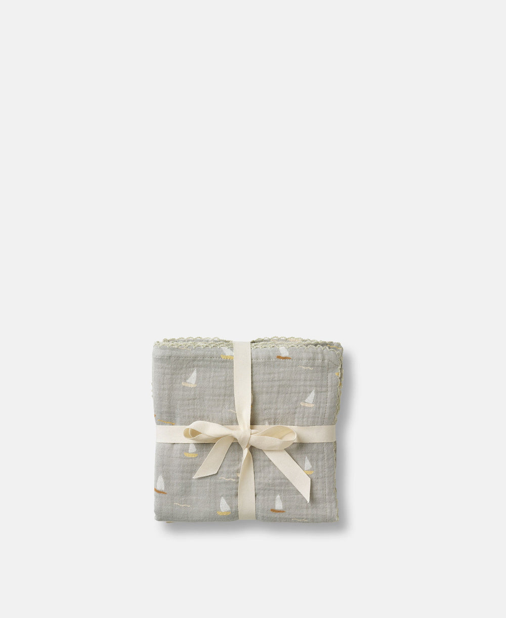 Die Musselintücher sind vorgewaschen für ein besonders weiches, krauses Aussehen, und werden durch weiteres Waschen nur noch weicher. Erhältlich im 3er-Pack mit Schleife.