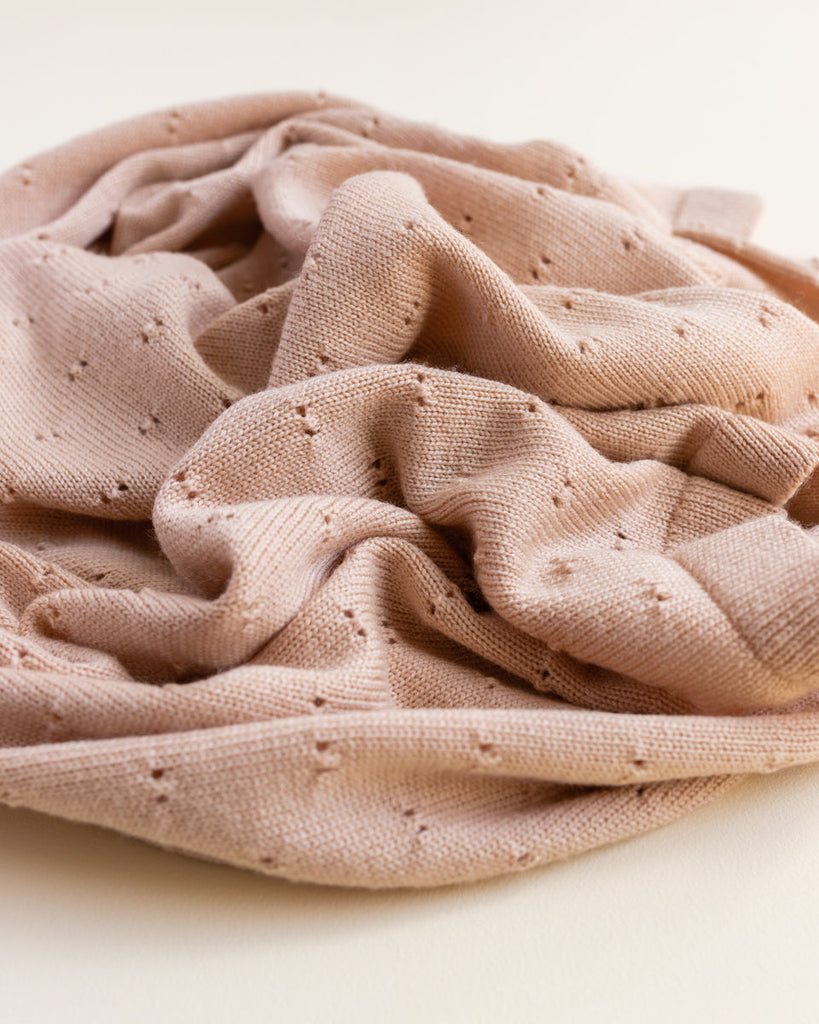 Decke Bibi ist eine zeitlose Ajourdecke aus weicher, atmungsaktiver Merinowolle. Dank ihrer mittleren Dicke ist sie ideal für alle Jahreszeiten. Ob als zusätzliche Schicht für Spaziergänge im Freien oder als kuschelige Decke für ein Nickerchen im Haus – diese vielseitige Decke ist perfekt für jeden Anlass.
