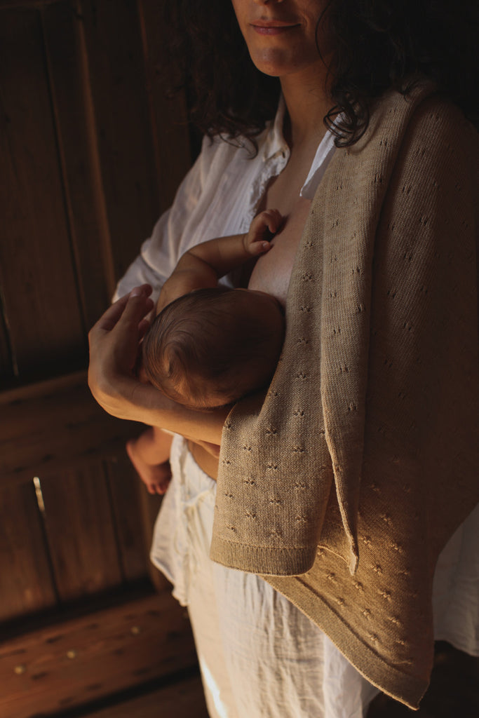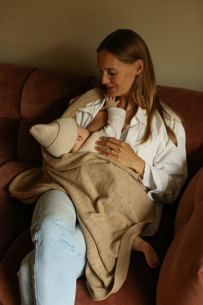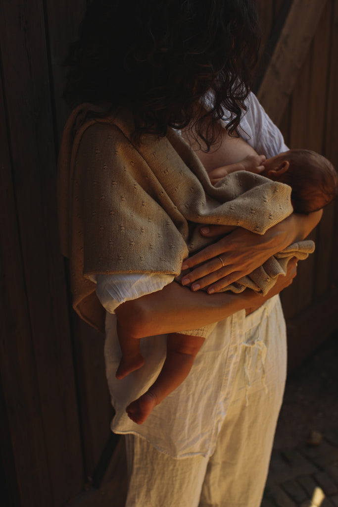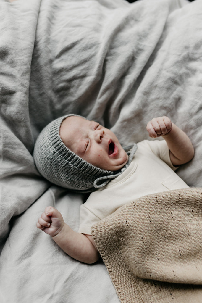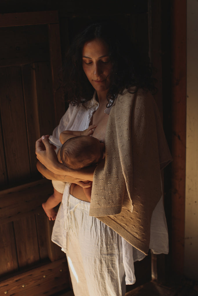 Decke Bibi ist eine zeitlose Ajourdecke aus weicher, atmungsaktiver Merinowolle. Dank ihrer mittleren Dicke ist sie ideal für alle Jahreszeiten. Ob als zusätzliche Schicht für Spaziergänge im Freien oder als kuschelige Decke für ein Nickerchen im Haus – diese vielseitige Decke ist perfekt für jeden Anlass.