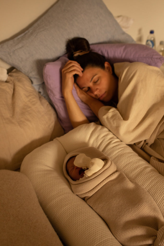 Der Hvid Babykokon bietet eine sanfte, wohlige Umarmung, inspiriert vom alten Wickeln. Er wurde entwickelt, um die Wärme und Geborgenheit des Mutterleibs nachzuahmen, beruhigt Ihr Baby und fördert einen erholsamen Schlaf. Der Kokon sitzt eng und lässt den Armen und Beinen Ihres Babys freie Bewegung. Der verstellbare Knoten wächst mit Ihrem Baby mit und sorgt in jeder Phase für einen sicheren und bequemen Sitz. Hergestellt in Belgien aus weicher, temperaturregulierender und antibakterieller Merinowolle, ist er perfekt für zarte Babyhaut. Der Kokon ist ideal für den Gebrauch tagsüber und eignet sich perfekt zum Füttern, für Nickerchen und Spaziergänge. Er passt nahtlos in den Kinderwagen, bietet Komfort auf der Couch und spendet wohltuende Wärme nach dem Bad. Er ist auch ideal für Frühgeborene, da er hilft, ihre Körpertemperatur zu regulieren. Bitte beachten Sie: Dies ist kein Schlafsack und muss unter Aufsicht aufbewahrt werden. - Nahtlos gestrickt