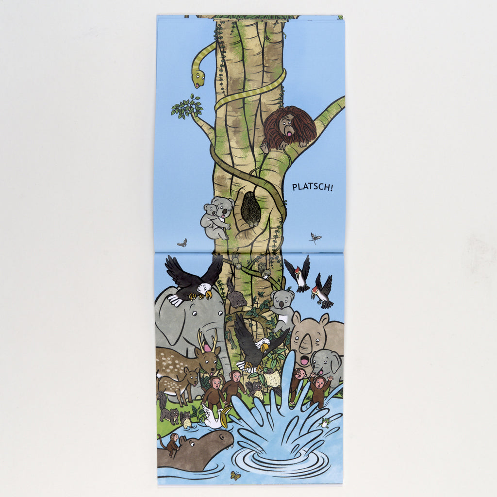 Heute ist es heiß! Da hilft nur eines, weiß das kleine Faultier: baden! Doch der Weg von der Baumkrone bis nach unten ist lang. Dass alle anderen Tiere an ihm vorbeifliegen, hinabsegeln, hinunterhuschen und längst beim Baden sind, macht es nicht besser. Und dann passiert ihm noch ein Missgeschick - das sich als großes Glück herausstellt! Ein humorvolles Bilderbuch voller unerwarteter Wendungen.