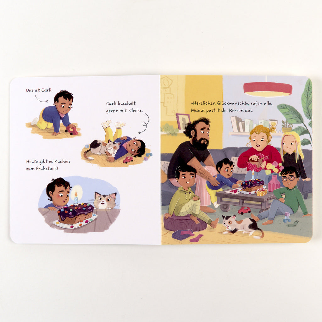 Die neue Pappbilderbuch-Reihe über Carli und Kater Klecks ermutigt Kleinkinder, die Welt auf ihre Weise zu erobern. Carli, ein wissbegieriges Kind, und der tiefenentspannte Kater Klecks sind ein liebenswert chaotisches Team. Die kurzen, lustigen Geschichten aus dem Familienalltag nehmen kleine Kinder ernst und begleiten sie auf dem Weg ihrer Entwicklung ganz frei und voller Zutrauen.