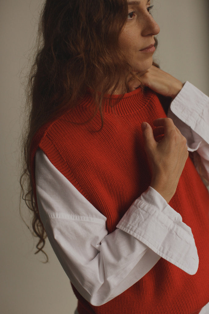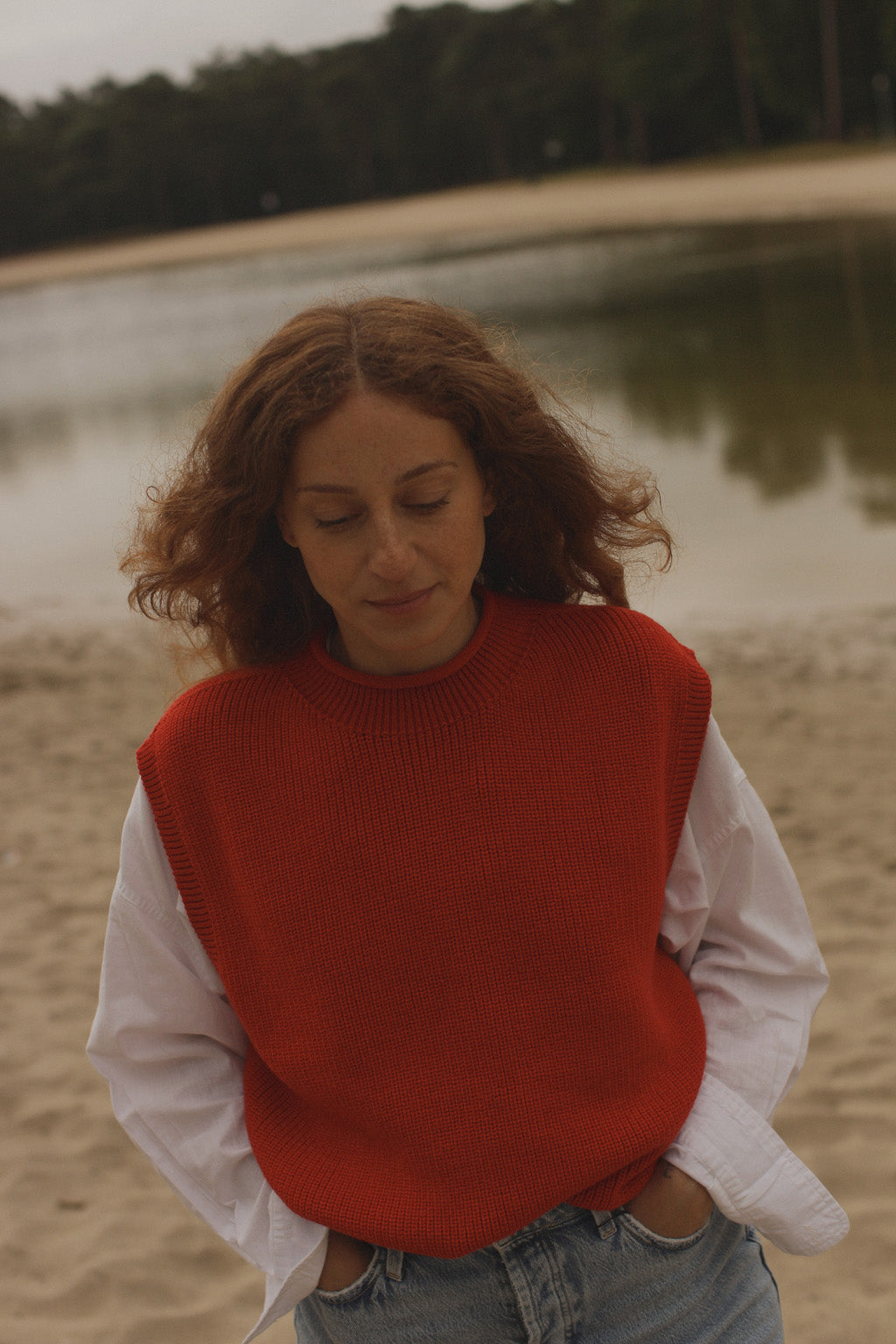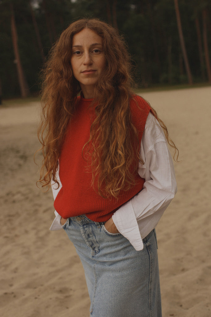 Helle ist eine 3D-Weste, die in einem Stück gestrickt wird. Die nahtlose Verarbeitung sorgt für hohen Tragekomfort und ein klares Design sowie eine perfekte Passform. Diese klassische Weste ist im Patentmuster gefertigt und hat einen kleinen Kragen. Die Textur ist unglaublich weich und kann direkt auf der Haut getragen werden – ein Pluspunkt für stillende Mütter. Die Weste Helle ist vielseitig einsetzbar und lässt sich mit Hemd, Bluse oder Rock kombinieren, um Ihr Outfit zu vervollständigen.