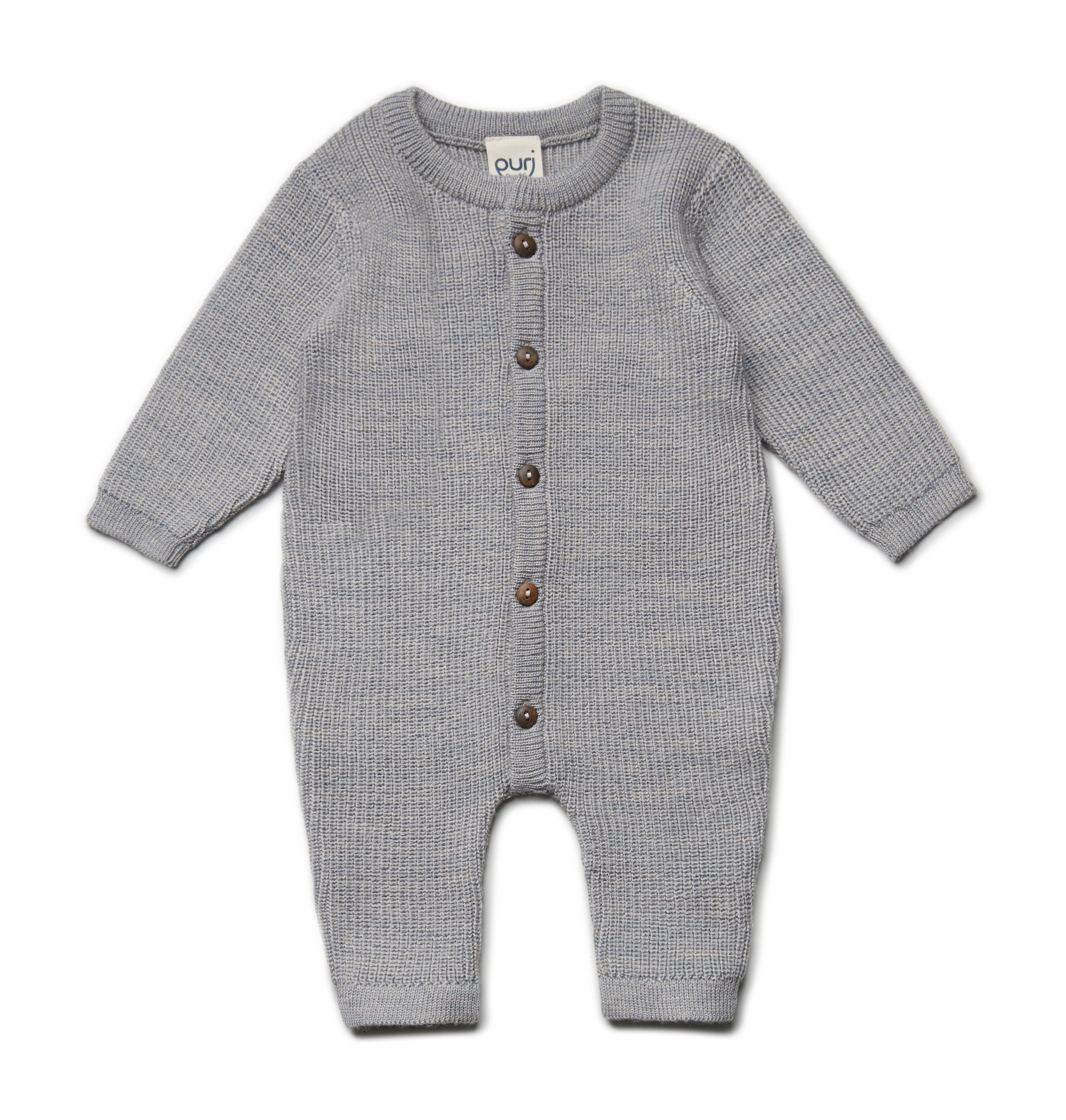 Merinowolle Strickoverall. Overall aus weichem, warmem und formstabilem Perlfangstrick. Mit durchgehender Knopfleiste zum einfachen An- und Ausziehen. Feine Merinowolle aus nachhaltiger Tierhaltung, mulesing frei.