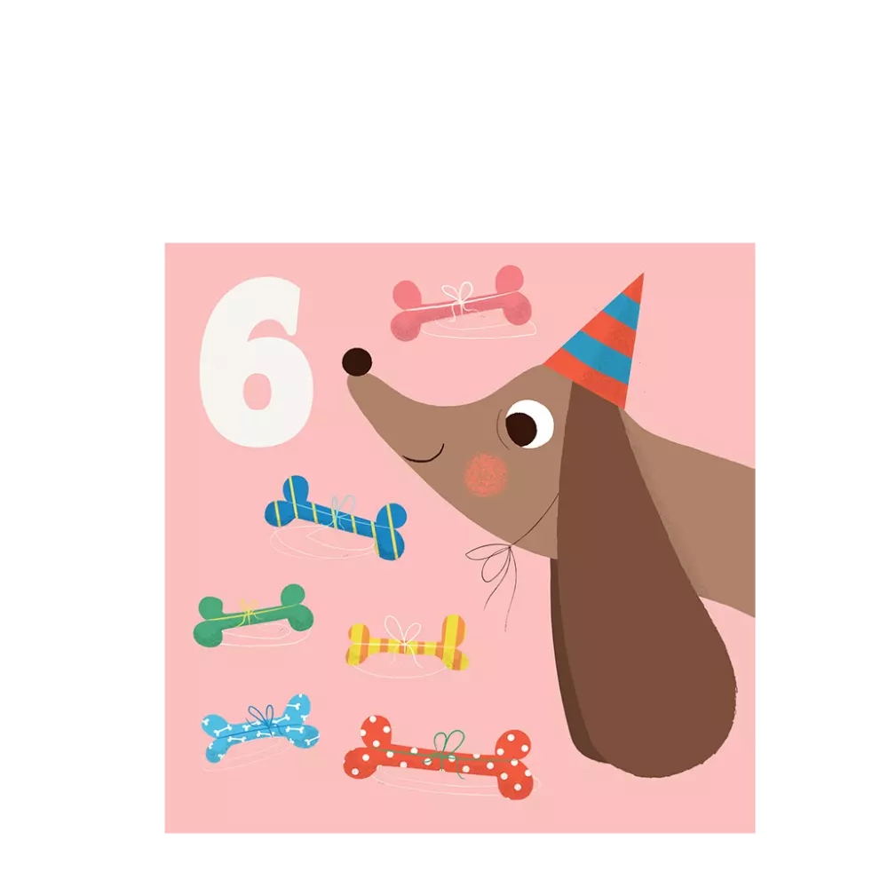 Geburtstagskarte Hund mit Knochen Nummer Sechs ist auf Lager und wird versandt, sobald es wieder verfügbar ist
