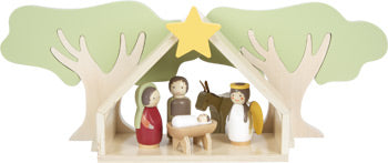 Mit diesem umfangreichen, kindgerechten Komplettset aus Holz erwacht die Weihnachtsgeschichte im Kinderzimmer zum Leben! Das liebevoll gestaltete Spielset mit hohem sichtbarem Naturholzanteil und der natürlichen Farbgebung eignet sich ideal als zeitgemäße und dennoch traditionelle Weihnachtsdekoration! Beim Nachspielen und Nacherzählen der Weihnachtsgeschichte mit den handschmeichlerischen Figuren kommt bei Groß und Klein spielend Weihnachtsstimmung auf. Figuren ideal für kleine Kinderhände geeignet!